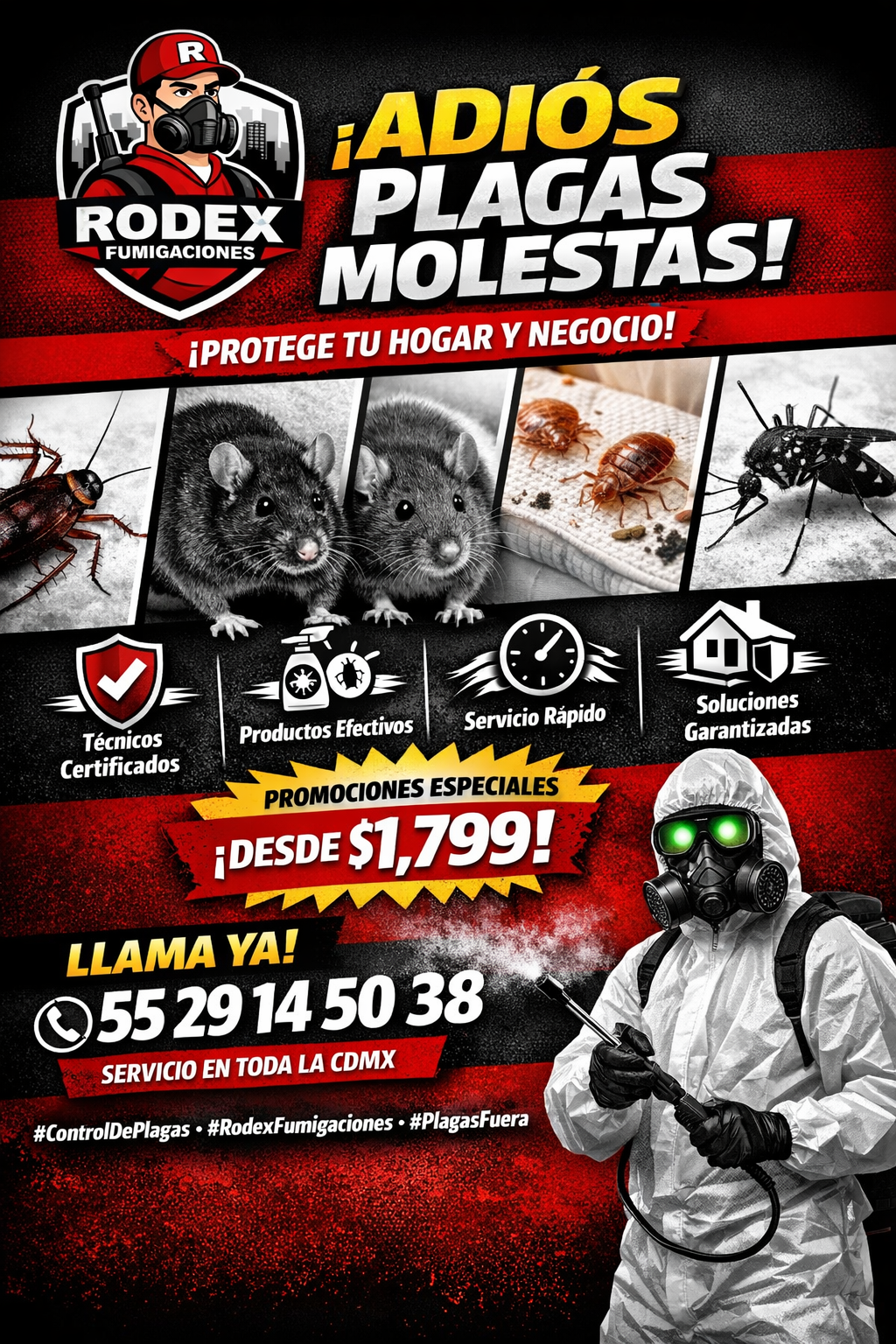 “Fumigaciones Rodex en Colonia La Herradura desde solo 1799 pesos, con atención rápida, segura y garantizada para eliminar plagas y proteger tu hogar o negocio eficazmente.”